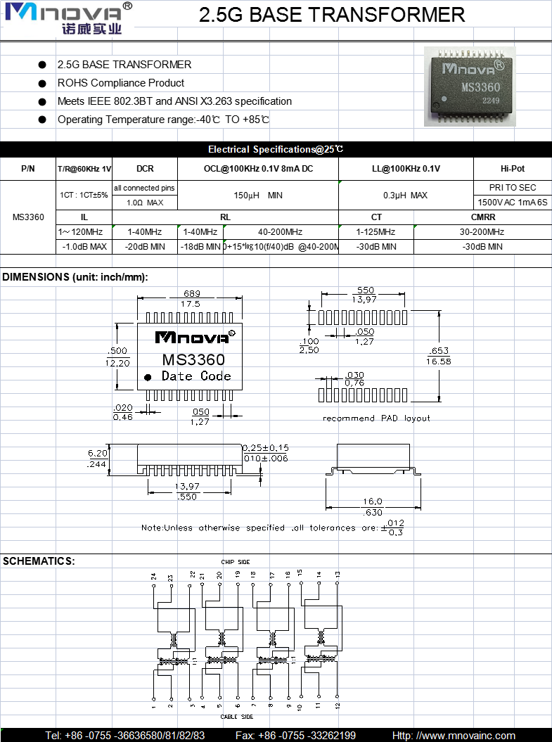 - 產品描述:2.5G BASE TRANSFORMER