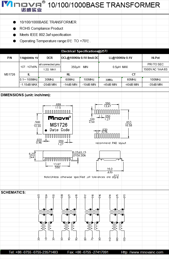 - 產(chǎn)品描述:1.10/100/1000BASE TRANSFORMER 2.ROHS Compliance Product 3.Meets IEEE 802.3af specification 4.Operating Temperature range:0℃ TO +70℃.