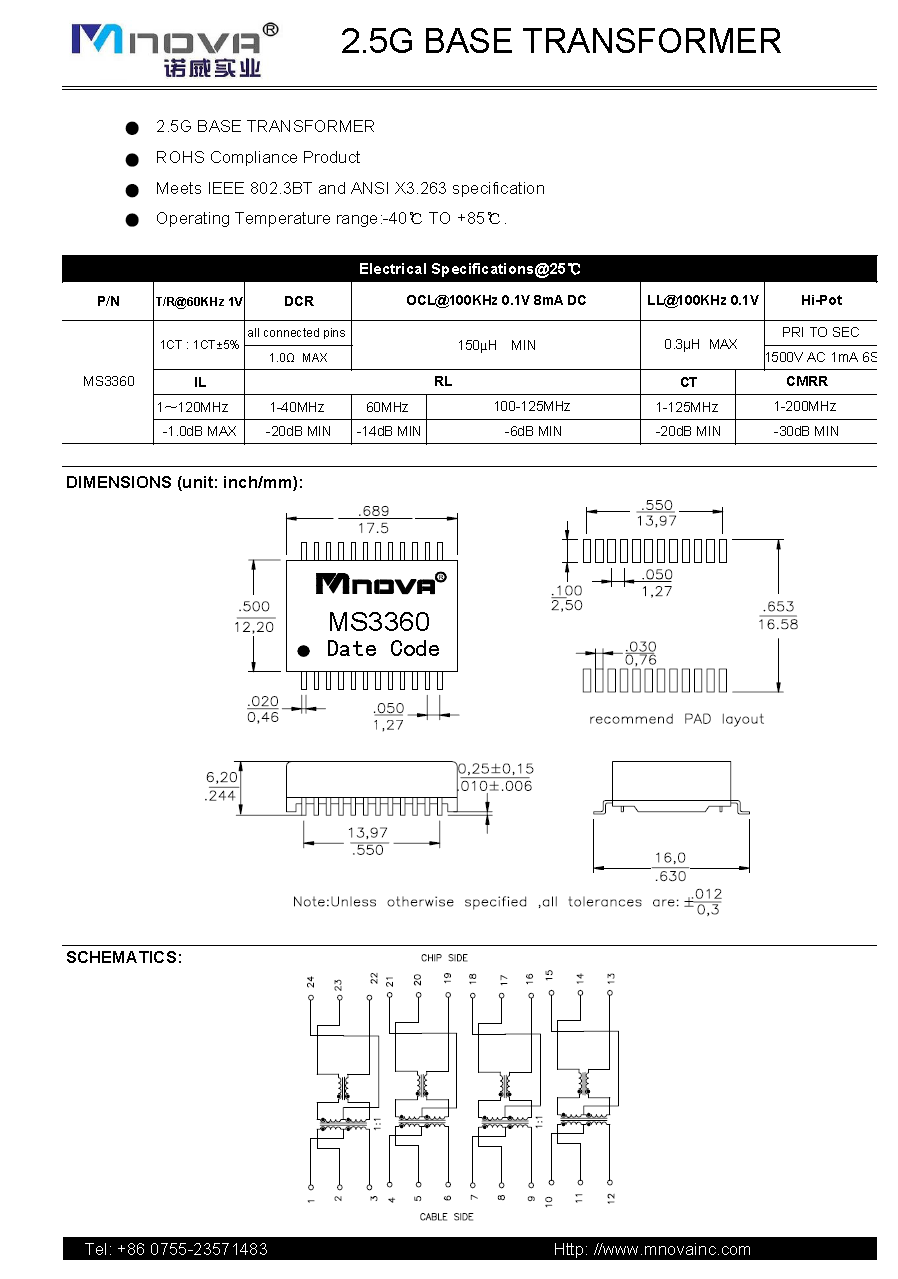 - 產(chǎn)品描述:1.2.5G BASE TRANSFORMER 2.ROHS Compliance Product 3.Meets IEEE 802.3BT and ANSI X3.263 specification 4.Operating Temperature range:-40℃ TO +85℃.